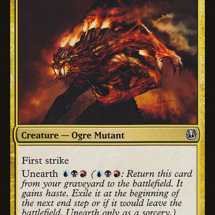 Set: Duel Decks: Ajani vs. Nicol Bolas Type: Creature — Ogre Mutant Rarity: Uncommon Cost: {1}{U}{B}{R} First strikeUnearth {U}{B}{R} ({U}{B}{R}:... Read more