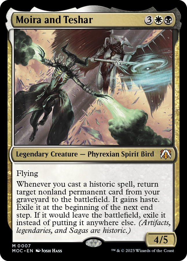 Set: March of the Machine Commander Type: Legendary Creature — Phyrexian Spirit Bird Rarity: Mythic Cost: {3}{W}{B} FlyingWhenever you cast... Read more