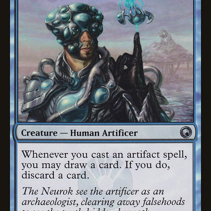 Set: Scars of Mirrodin Type: Creature — Human Artificer Rarity: Uncommon Cost: {1}{U} Whenever you cast an artifact spell, you... Read more