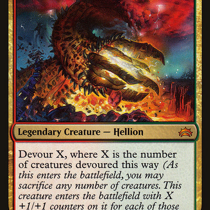 Set: Planechase Anthology Type: Legendary Creature — Hellion Rarity: Mythic Cost: {3}{R}{G} Devour X, where X is the number of... Read more