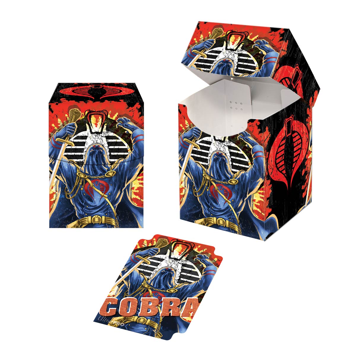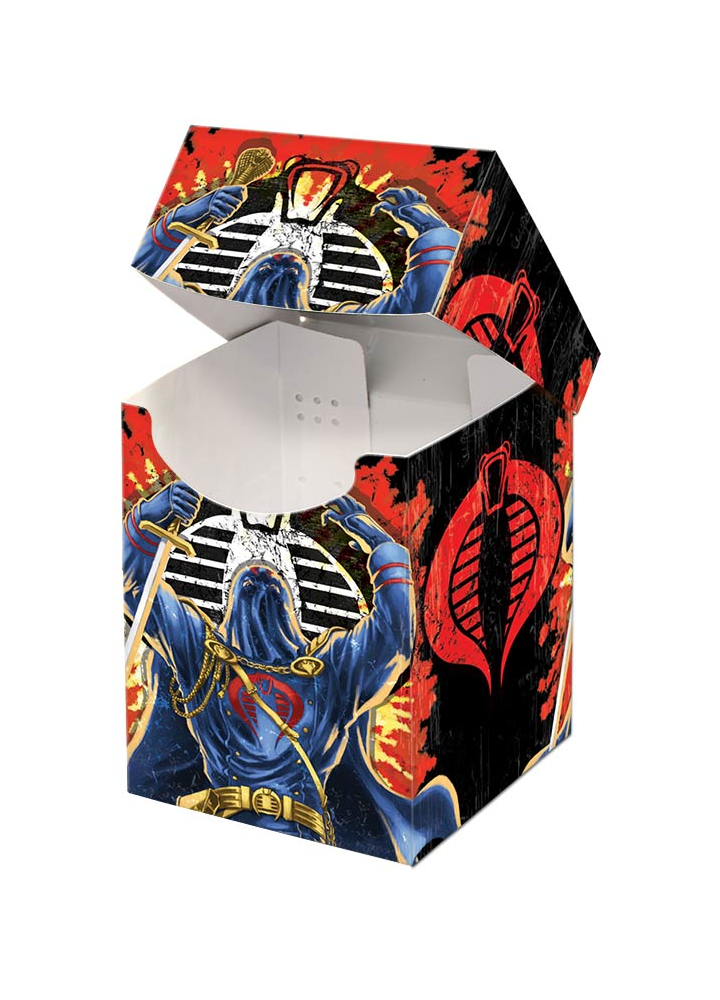 Store and protect your favorite deck with this G.I. Joe PRO-100+ Deck Box, sized to fit 100 standard size (2.5" x 3.5") gaming cards double sleeved in Ultra PRO Deck Protector sleeves. Each box features detailed, full color artwork. This box is light, easy-to-carry and made with archival-safe, rigid polypropylene material. The self-locking lid design makes it easy to secure your deck, while thumb notch sections provide easy access to cards. Each box comes with one (1) deck divider with full color artwork.