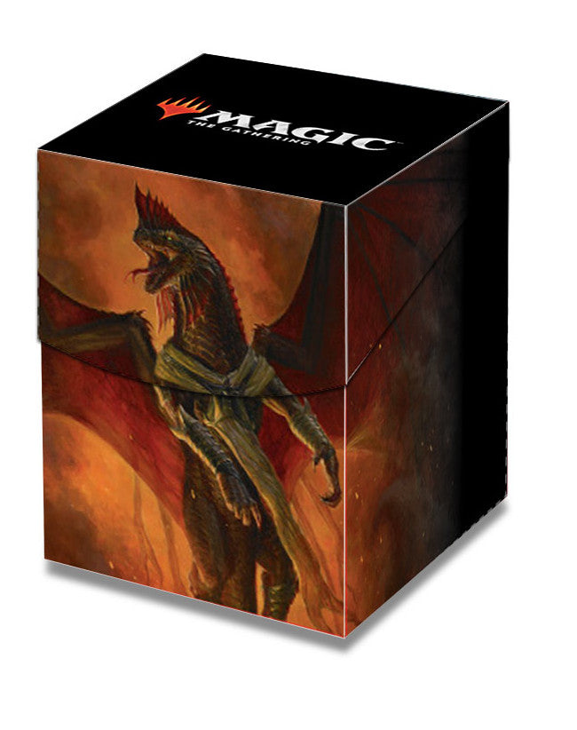 The 100+ Deck Box features vibrant, full-color artwork from Magic: The Gathering and includes a deck divider. Made with archival-safe, non-PVC, rigid polypropylene materials, you can store up to 100 double-sleeved cards with confidence. The self-locking lid keeps your cards securely stored when not in use, while also offering easy access. Sized for standard size trading cards.