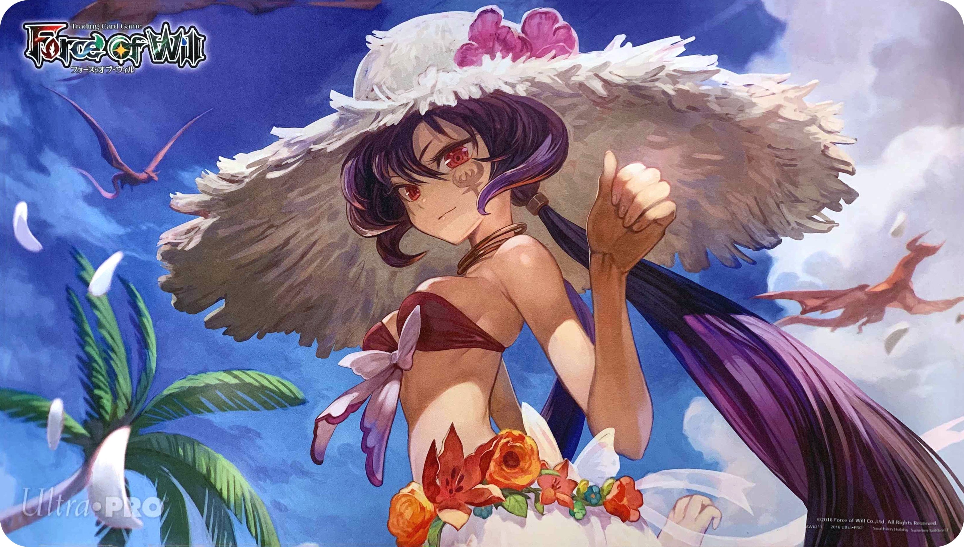 Playmats feature popular Force of Will artwork. Made with a soft fabric top to reduce damage to cards during play and a non-slip rubber backing to keep the playmat from shifting during use, playmats enhance the gameplay experience. With dimensions of approximately 24 in. x 13.5 in., a playmat also makes an excellent oversize mousepad for home or office.
