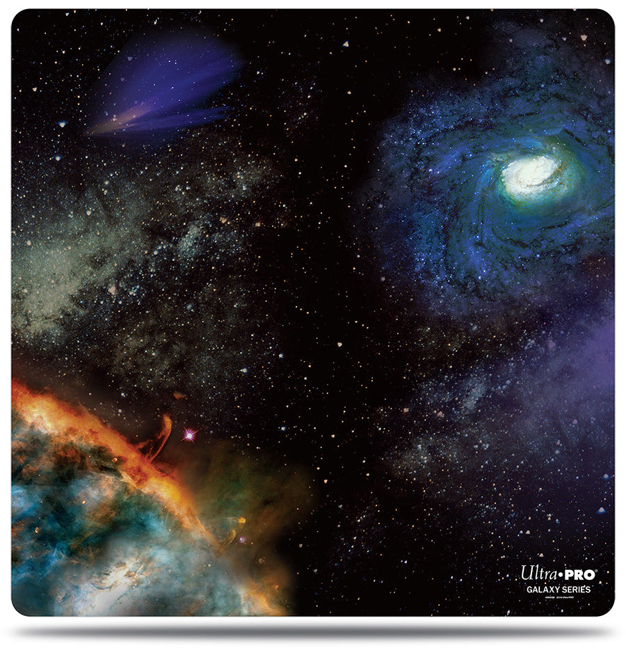 Galaxy Series over-sized playmat features rounded corners. Venture into deep space with beautiful, full color printed space scenery. Made with a premium fabric top to prevent damage to cards during game play and rubber backing to reduce impact and noise during dice rolls. This playmat is also the perfect decorative over-sized mouse pad for computer and laptop workstations. Non-slip textured rubber back lets the playmat lay flat and prevents it from shifting during use.