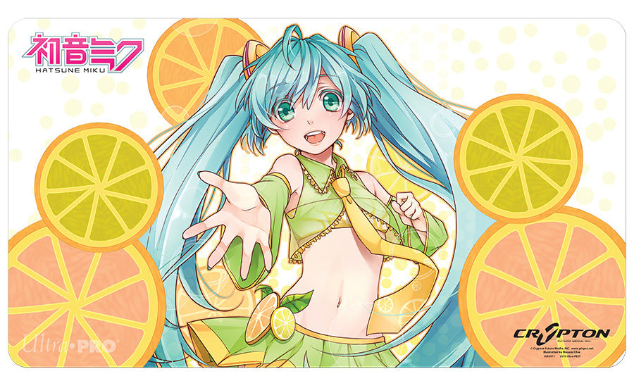 Bring the heat to your next game night with this officially licensed Hatsune Miku playmat! This playmat is made with bright, colorful, full artwork and non-slip rubber backing. The soft fabric top is perfect for protecting your valuable gaming cards during game play. This playmat also works great as a mat for your computer and laptop workstation as the surface works with most mouse devices.