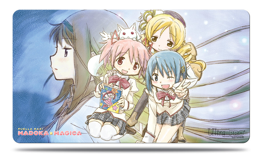 Come join the Magical Girls in their adventure to fight off evil witches of the world with this officially licensed Puella Magi Madoka Magica playmat. Made with a premium fabric top to prevent damage to cards during game play for tabletop gamers. This playmat is also the perfect decorative over-sized mouse pad for computer and laptop workstations. Non-slip rubber backing lets the playmat lay flat and prevents it from shifting during use. Features Madoka, Homura, Sayaka and Mami from the popular anime series Puella Magi Madoka Magica!