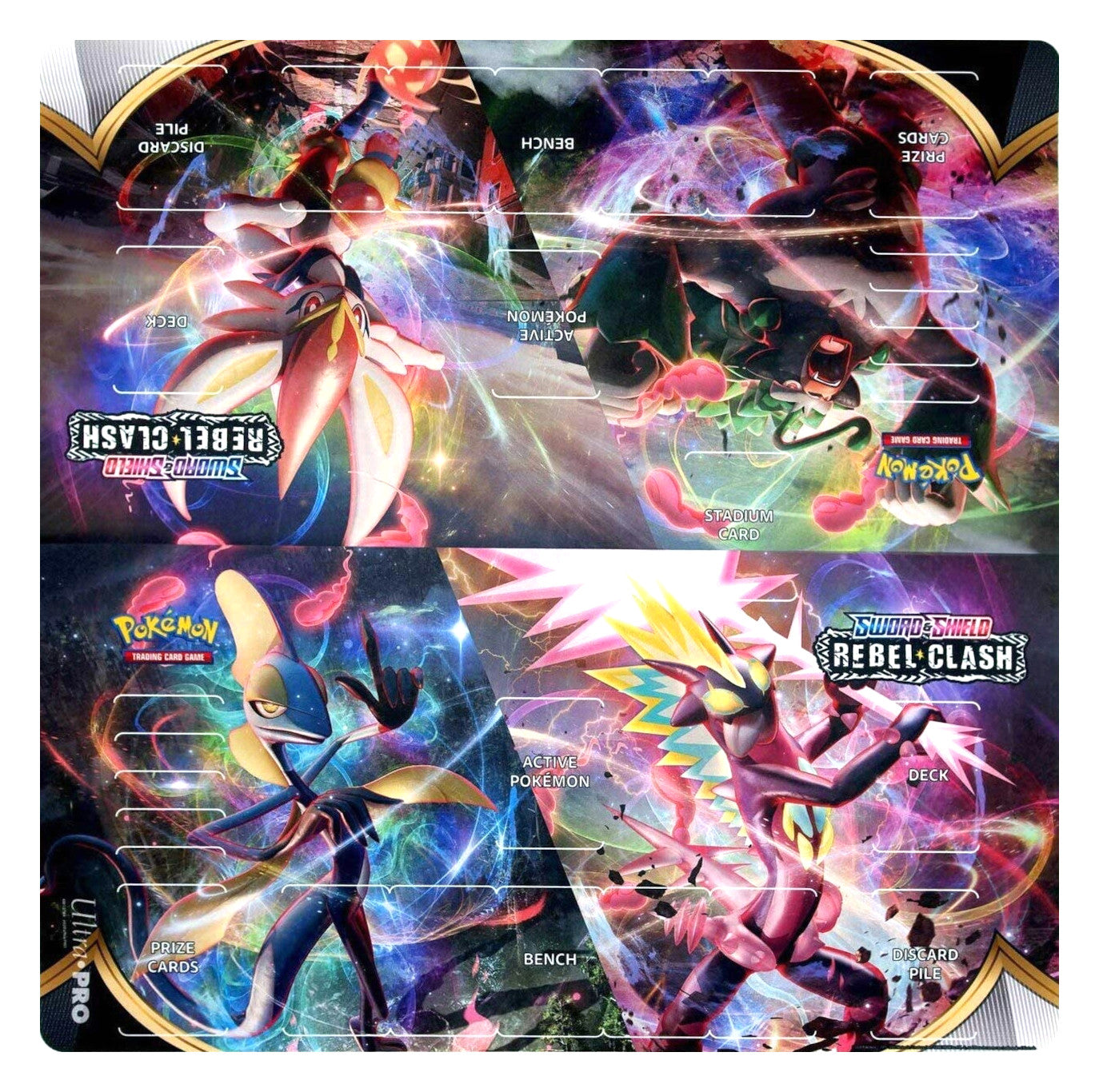 • Official Pokémon Rebel Clash playmat with card placement guide and turn references to assist gameplay