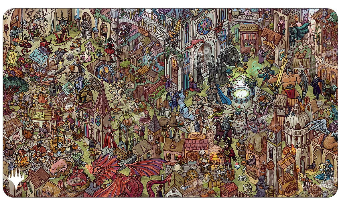 Playmats feature popular Magic: The Gathering artwork. Made with a soft fabric top to reduce damage to cards during play and a non-slip rubber backing to keep the playmat from shifting during use, playmats enhance the gameplay experience. With dimensions of approximately 24 in. x 13.5 in., a playmat also makes an excellent oversize mousepad for home or office.