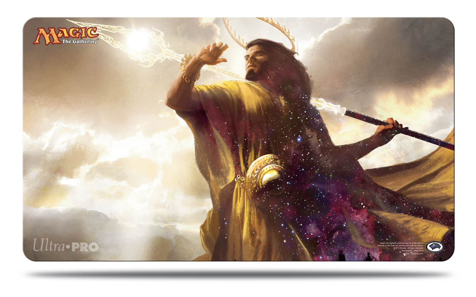 Playmats feature popular Magic: The Gathering artwork. Made with a soft fabric top to reduce damage to cards during play and a non-slip rubber backing to keep the playmat from shifting during use, playmats enhance the gameplay experience. With dimensions of approximately 24 in. x 13.5 in., a playmat also makes an excellent oversize mousepad for home or office.