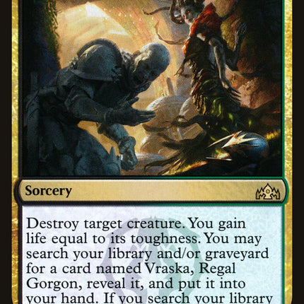 Set: Guilds of Ravnica Type: Sorcery Rarity: Rare Cost: {4}{B}{G} Destroy target creature. You gain life equal to its toughness.... Read more